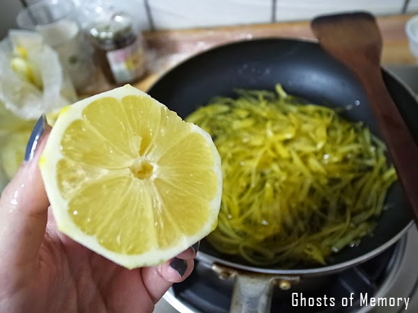 基本上糖漬完後的味道真的只是甜甜的糖味加上檸檬香氣,但是總覺得少了點什麼。於是途中加入檸檬汁增添些許酸味。可以視個人喜好增減。